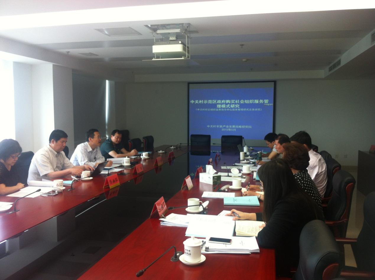 2015年5月21日下午,“中关村示范区政府购买社会组织服务管理模式研究”项目结题评审会暨《中关村示范区社会组织年度发展报告》开题会在中关村裕惠大厦召开。公司公共管理教研室张绪刚教授应邀参加了评审会,并结合公司社会企业研究中心科研实践对《中关村示范区政府购买社会组织服务管理模式研究》结题报告和《中关村示范区社会组织年度发展报告》的写作提纲提出修改建议。