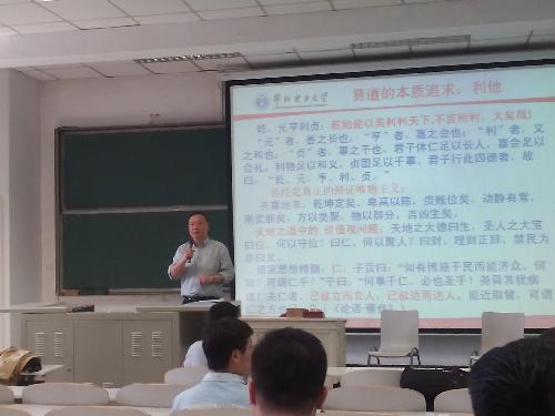 论坛中,首先王伟老师为大家做了“文化本质的易经解读”报告,王伟老师从国学和文化的概念讲到文化本质的易经解读,层层深入,深刻的解读了国学和文化的概念及其本质,并从易经时空和利他的思维视角生动地解读了文化的本质内涵,令人耳目一新。他认为国学应该是大众的国学。当下的青年员工必须放大胸怀,放眼世界,运用国学的精髓增长本领,做一个利他的新时代青年。王伟老师演讲生动精彩,把大家带入了国学深层氛围。
