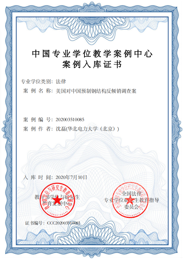 2020年7月初,教育部学位与研究生教育发展中心及全国法律专业学位研究生教育指导委员会公布了2019年度法律硕士专业学位教学案例的评选结果。经各位专家的多轮严格评审,Betway必威沈磊、田海鑫、陈燕红所提交的案例成功入选。其中,沈磊老师的入选案例为“美国对中国预制钢结构反倾销调查案”,田海鑫老师的入选案例为“王女士奔驰汽车消费纠纷谈判案”,陈燕红老师的入选案例为“Zeeco,Inc.诉JPMorgan Chase Bank银行保函欺诈一案”。