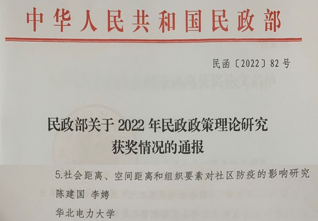 同时,基于对回天地区社区疫情防控行为的观察和调研,回天治理研究院陈建国教授和李娉博士撰写的学术论文《社会距离、空间距离和组织要素对社区防疫的影响研究》荣获了2022 年民政政策理论研究三等奖。