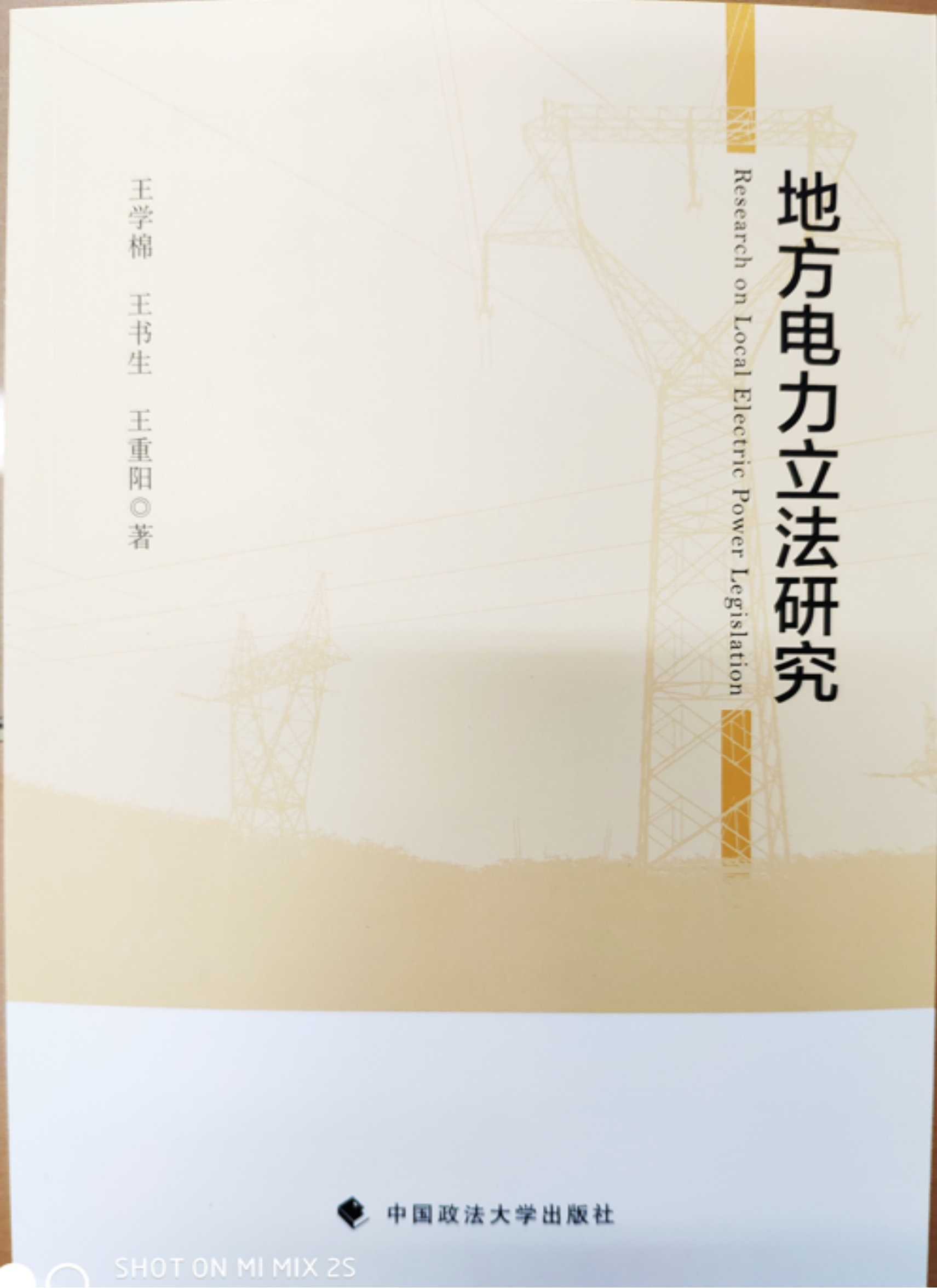 《地方电力立法研究》已于2019年10月由中国政法大学出版社正式出版。该书是在王学棉教授主持的北京市哲学社会科学基金项目《“十二五”期间北京地方电力立法研究》基础上,根据最新地方电力立法情况修改而成。本书的三位作者——王学棉、王书生、王重阳——也是课题组成员。此书的出版是Betway必威电力立法研究中心在特色法学研究——电力法研究方面又一重要成果。