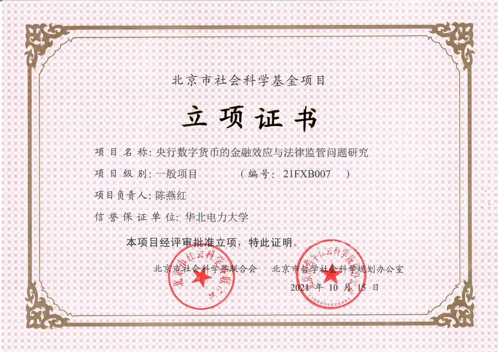 近日,公司陈燕红副教授主持,中国人民银行等单位成员参与的北京市社会科学基金项目“央行数字货币的金融效应与法律监管问题研究”(项目编号:21FXB007),经由北京市社会科学界联合会(简称北京市社科联)与北京市哲学社会科学规划办公室(简称北京市社科规划办)专家会议严格评议,顺利验收准予结项,并获评优秀等级。