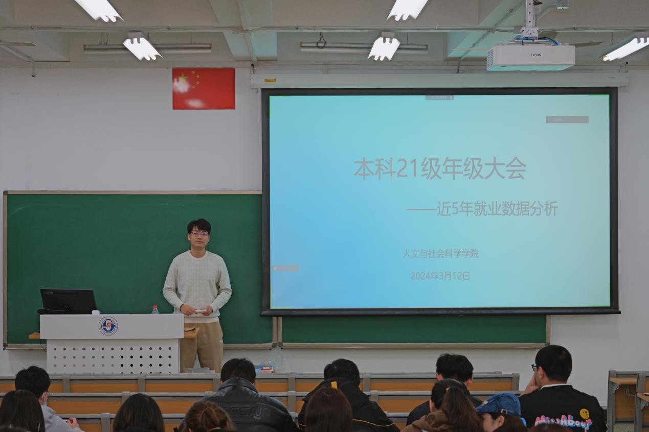 为帮助同学们进一步了解所学专业今后的就业方向,规划自身职业发展道路,发展目标专业能力。3月12日下午,在教三C201,学院面向全体2021级本科生,召开生涯规划专题讲座。本次大会由本科生2021级辅导员马铭浩主讲,全体21级本科生参加。