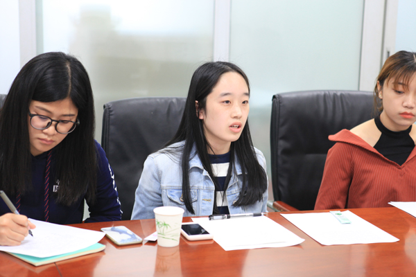 随后,进入正式讨论的环节,研究生员工干部,提出了有关进一步扩充图书馆资源与校园环境建设和文化气氛营造方面的一些不足和建议。研究生员工干部的发言关注实际、注重实效,为会议的深入讨论创造了良好的开端。接着,讨论会的气氛变得活跃起来,同学们各自联系本校实际的优势与不足,提出并讨论了一系列具有针对性,讲求实效性的建设性意见,如:提升学校硬件设施、继续完善党建工作,加强理论学习,提高思想政治教育、增强校园人文气息,加强校园建设等丰富内容,涉及学校资源、学风建设、党建工作、文体活动以及实习拓展等多个领域。