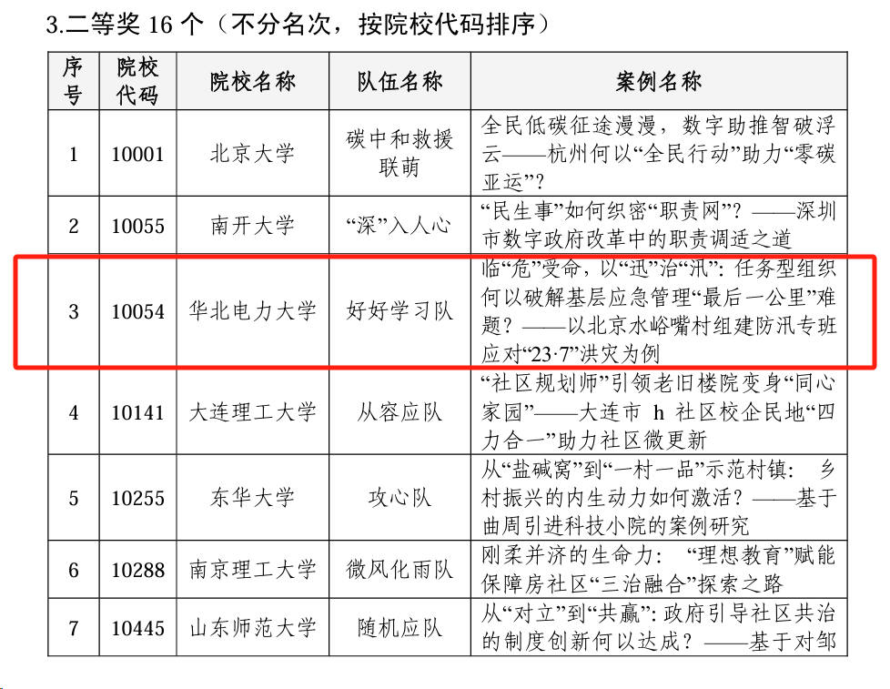 2024年4月21日,全国公共管理专业学位研究生教育指导委员会举办的第八届中国研究生公共管理案例大赛决赛在中国科学院大学举行。本次大赛中,来自260所院校的2597支队伍报名参赛。大赛共产生特等奖4个,一等奖12个,二等奖16个,三等奖68个,优秀奖322个。公司呼占平副教授指导的“好好学习”队获得二等奖,华电公共管理硕士(MPA)研究生首次登上总决赛舞台,取得历史性突破!