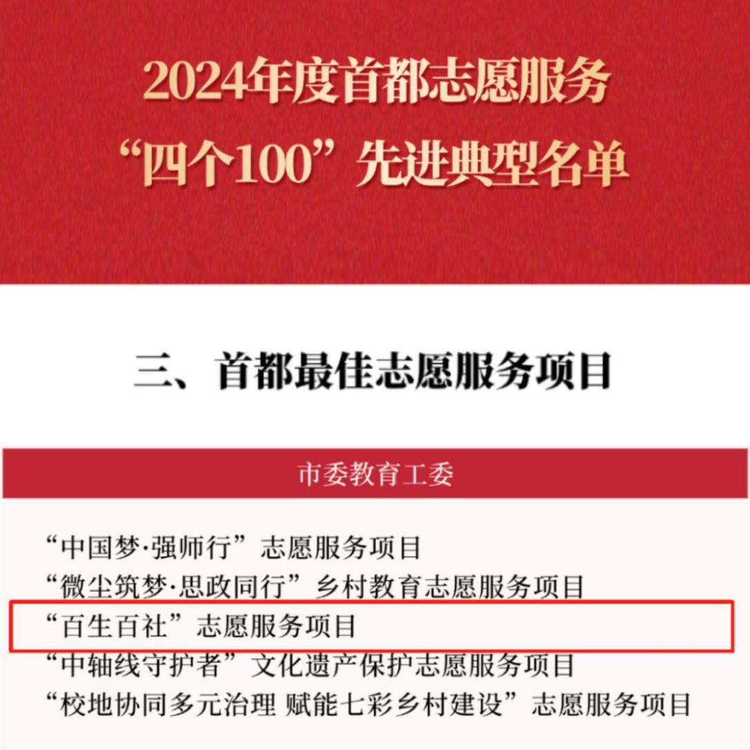 近日,由市委社会工作部、市委宣传部(首都文明办)等26个部门联合开展的2024年度首都志愿服务“四个100”先进典型宣传活动结果公布。公司Betway必威“百生百社”志愿服务项目获“首都最佳志愿服务项目”称号。
