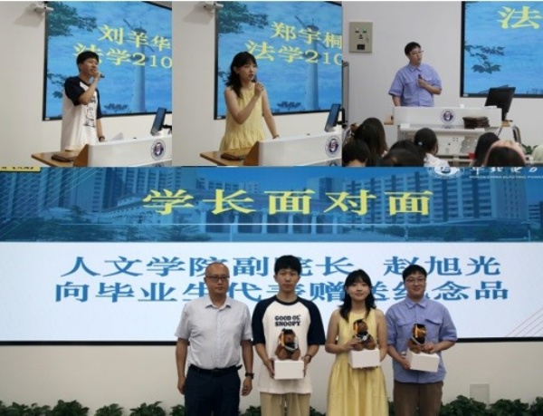 “学长对我说”是此次活动的亮点之一。大会邀请了刘羊华、郑宇桐和文琦锋三位毕业生。三位同学分别分享各自的升学经验,从备考策略到择校思路,再到心态调整,为学弟学妹们提供了有益的建议。副经理赵旭光为三位毕业生赠送纪念品,以表感谢与祝福。