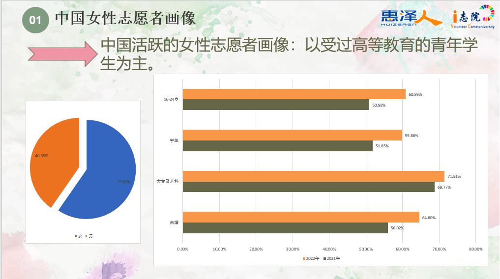 通过本次研讨,可以发现,在志愿服务领域,女性志愿者依靠其独有的魅力与特质,逐渐成为推动中国公益慈善事业和志愿服务事业发展的重要群体。尽管还存在诸多障碍,但是随着时代的进步,通过提供更多的资源、培训和支持来逐步克服障碍,女性在志愿服务领域将有更多的参与和贡献,并同时助力女性的全面发展。