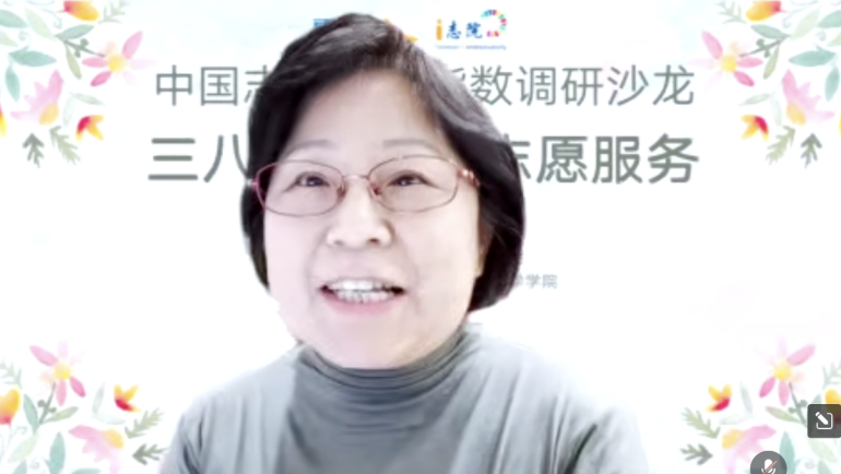 北京惠泽人公益发展中心创始人、北京博能志愿公益基金会理事长,北京志愿服务联合会常务理事翟雁进行总结发言。她首先肯定了女性志愿者在志愿服务领域和公益慈善事业中的贡献和价值,也强调我国女性志愿者参与服务的普遍性仍然是性别不平等自然选择的结果。未来,要打破传统的女性认知,看到女性更多的可能,同时,为女性志愿者参与志愿服务营造更加包容、开放和平等的社会环境,让女性充分发挥自身特质在奋斗、奉献中实现自身价值,推动志愿服务事业发展。最后,也感谢了女性志愿者调研报告团队这一志愿服务年轻“后浪们”、VIO伙伴们在推动志愿服务基础研究中的投入和贡献,对女性志愿者和妇女送上了诚挚的节日问候。