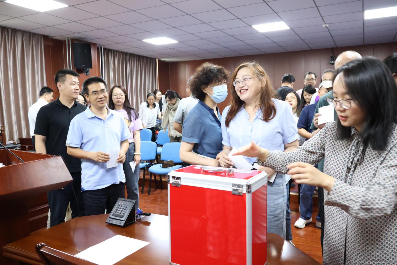 分工会主席组织与会教职工审议了工作报告和财务报告,通过了新一届委员候选人名单、监票计票人员名单及换届选举办法,并进行了举手表决。总监票人赵旭光主持选举,经无记名投票,大会选举崔灿、吴颖梅、庞涛、胡舒敏、刘亚五位同志为新一届分工会委员会委员。