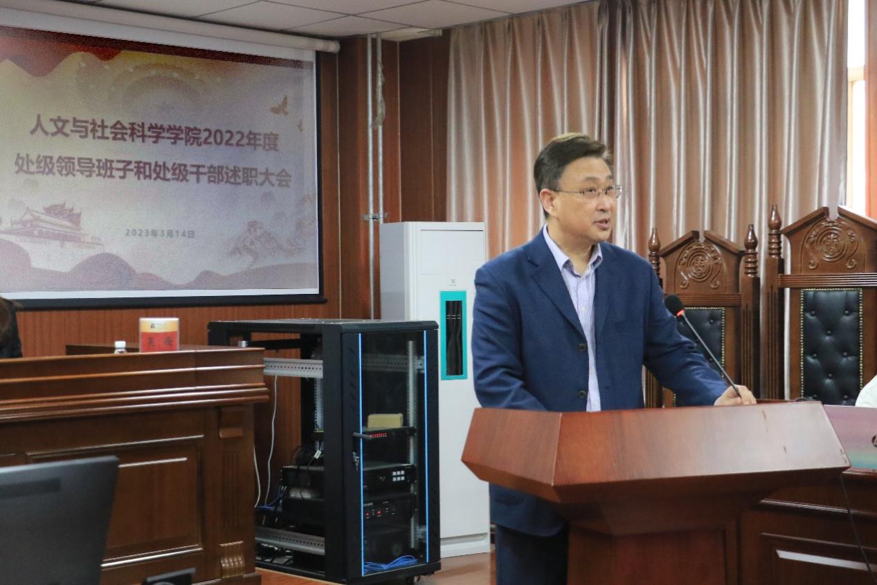 苑英科代表学院领导班子全面总结回顾了2022年学院的各项工作,他指出,过去一年里公司坚持以习近平新时代中国特色社会主义思想为指导,全面学习贯彻党的二十大精神,加强党建标杆院系建设,全力投入校园疫情防控工作,在教学科研等工作中取得突出成绩,网络与新媒体本科专业招收首届新生,新闻与传播专业硕士点建设初见成效,法学获一流本科专业建设点,获得国家社科基金3项,科研经费较去年增长81.34%,统战工作、回天治理,员工工作等方面取得多项标志性成果。苑英科从学习贯彻落实党的二十大精神、立足“新文科”的发展坚定信心抢抓机遇力争多点突破、完成党建标杆院系创建各项战略任务、持续加强基层党支部建设、人才引育、持续推进以回天地区为主的“新文科社会试验区”建设等方面对2023年学院的重点工作进行了布置。