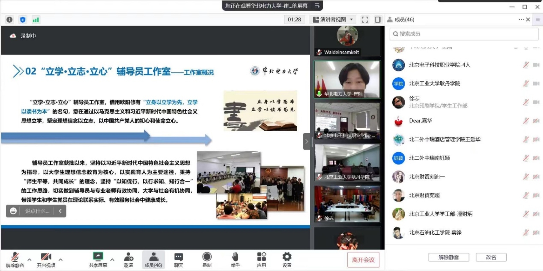 10月27日,北京市“立学·立志·立心”员工党建工作室主持人、Betway必威团委书记崔灿应邀为2022年北京高校新上岗辅导员做专题为“以实践为途径的理想信念教育”报告。中国传媒大学、北京第二外国语学院、北京财贸职业学院、北京物资学院、北京印刷学院、北京石油化工学院、北京电子科技职业学院、北京工业大学耿丹学院、北京第二外国语学院中瑞酒店管理学院和北京工业大学10所高校的2022年新上岗辅导员,共计七十余人参加培训。