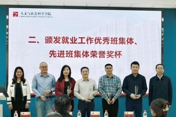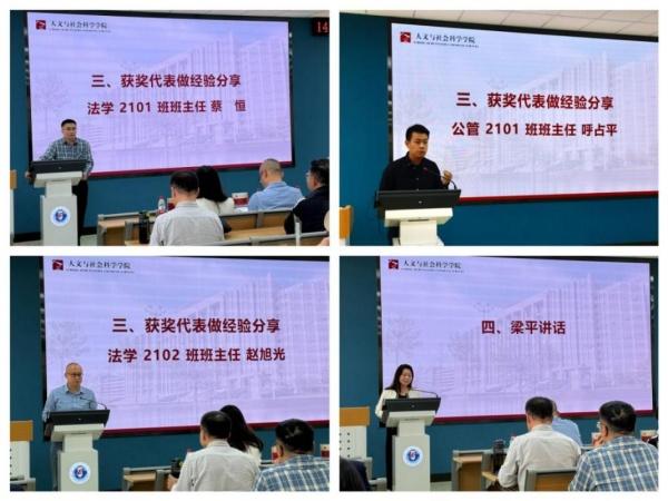 结合《Betway必威关于表彰毕业生就业工作先进集体和个人的奖励方案》,学院评定就业工作优秀班集体2项,就业先进班集体3项。吴万凯与梁平共同颁发获奖班集体荣誉奖杯,对2025届就业工作中表现突出的班级予以表彰。法学2101班班主任蔡恒、公管2101班班主任呼占平、法学2102班班主任赵旭光,围绕就业动员、就业指导、学业帮扶、未来规划等方面作经验分享。