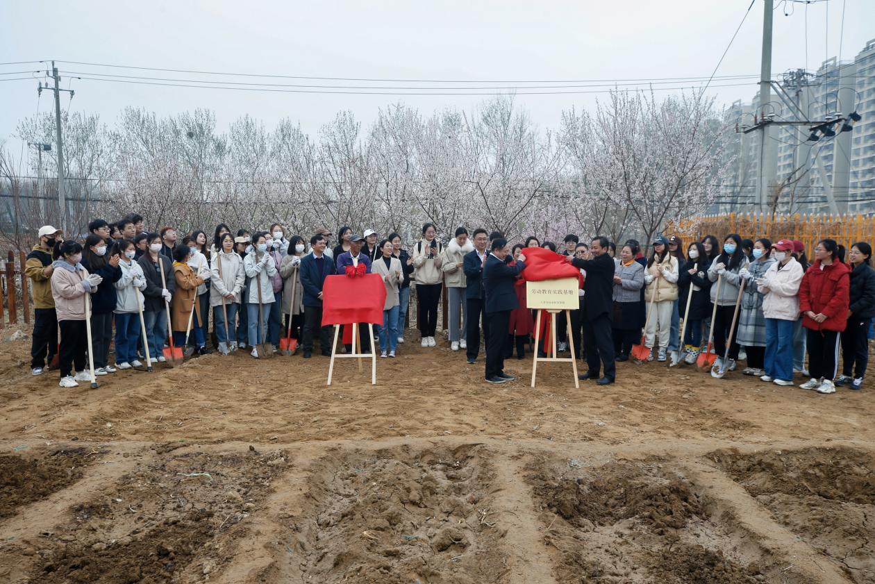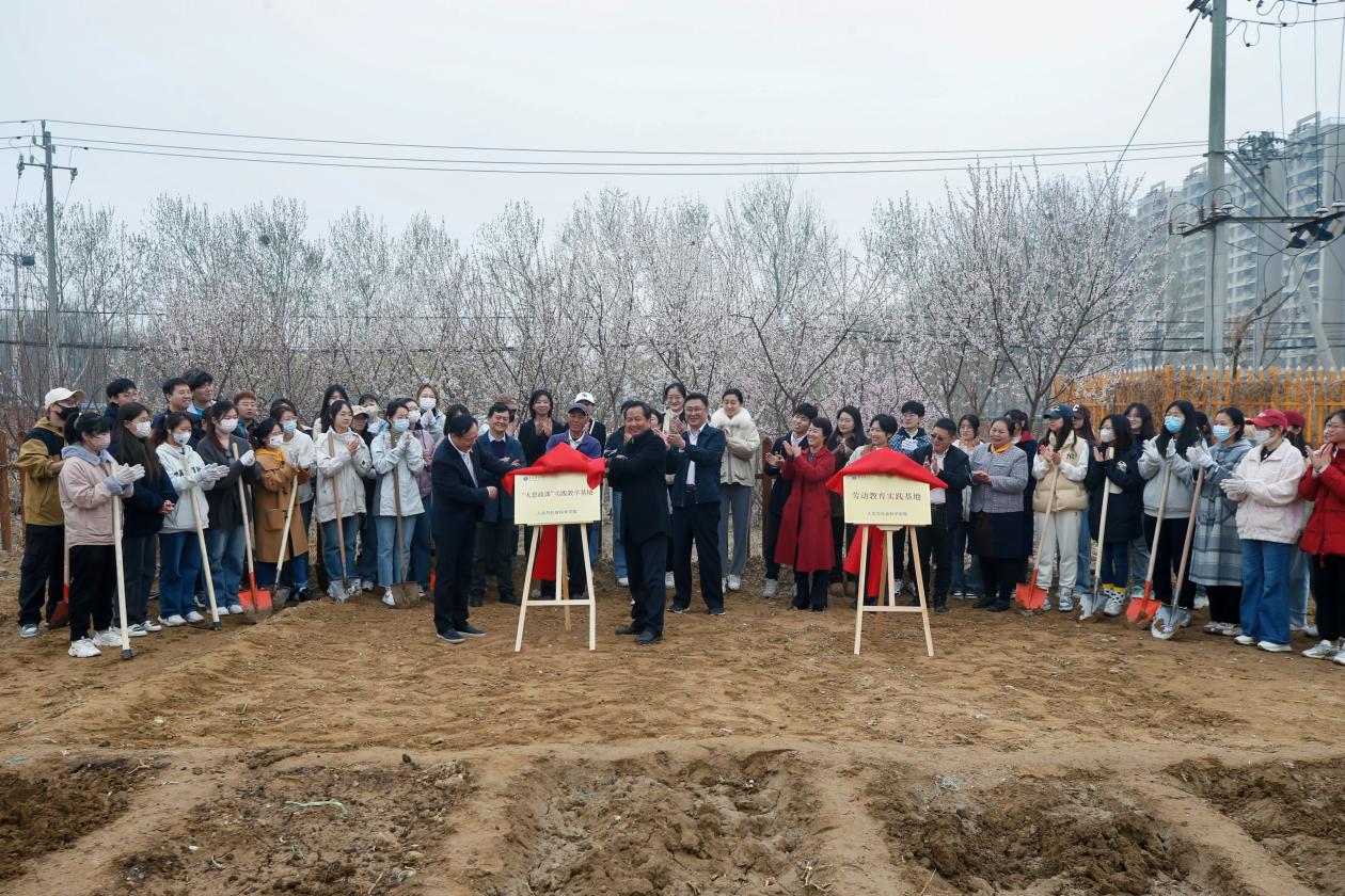 苑英科主持揭牌仪式,介绍基地建设过程。何华、李宝忠为“大思政课”实践教学基地、劳动教育实践基地揭牌。参加仪式的各位领导和学院师生进行了田间种植。