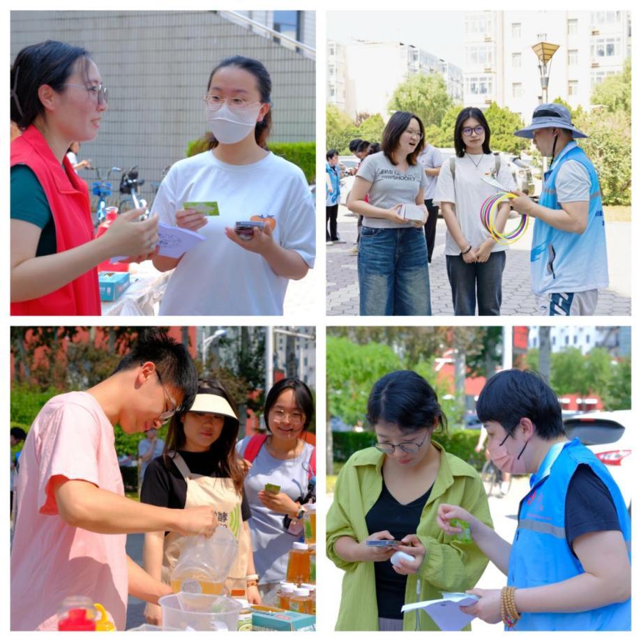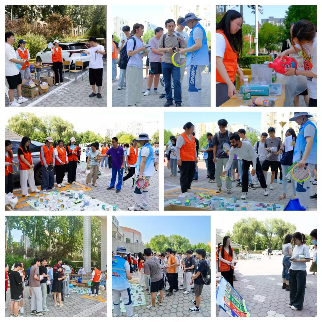 活动现场,霍家营社区社工系统讲解了生活垃圾四分类标准及资源循环利用知识,并分享了社区治理中的典型经验。人文学院员工志愿者则提供“一对一分类指导”服务,将理论与实践紧密结合。活动设置了趣味套圈圈、分类掷沙包、健康跳绳、环保酵素制作四个互动区域,形式新颖的游戏与宣传吸引了众多同学踊跃参与。